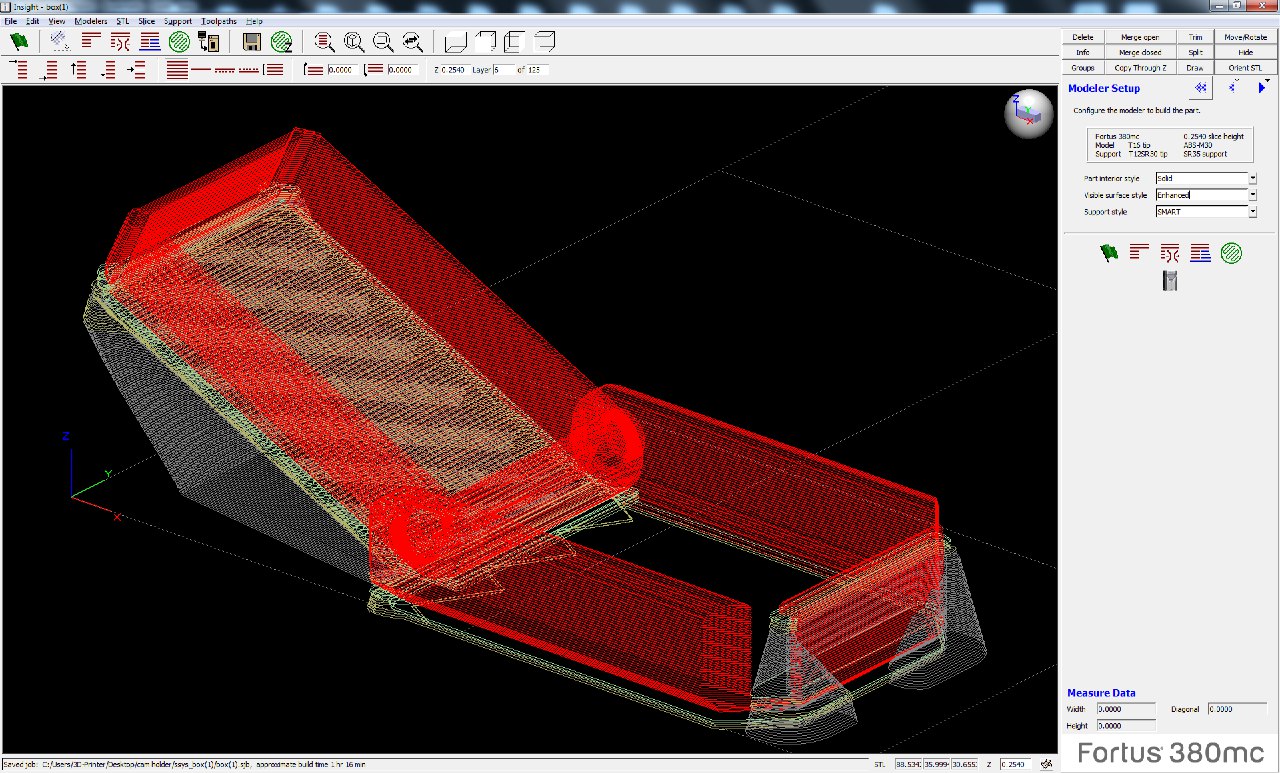 Next thing is to create a toolpath for the printer. There are multiple ways to do it, but Stratasys Fortus380 works Insight slicer (not only, but in FabLab Oulu we use this one).