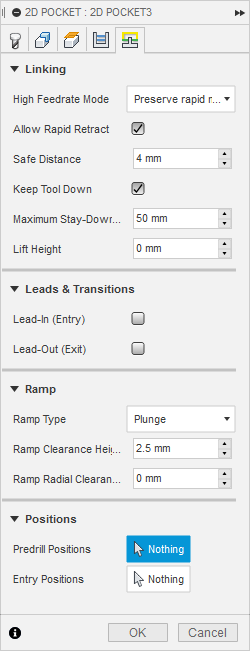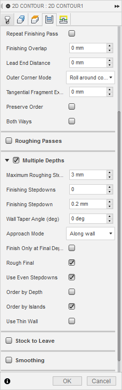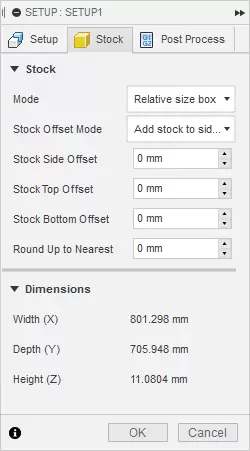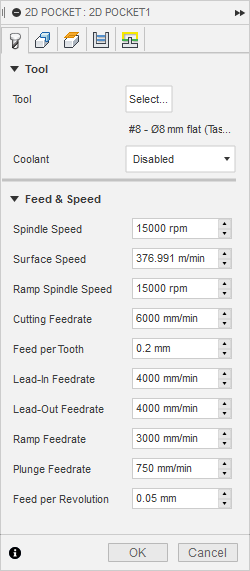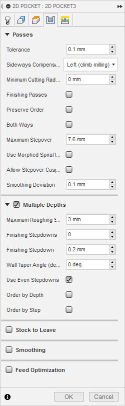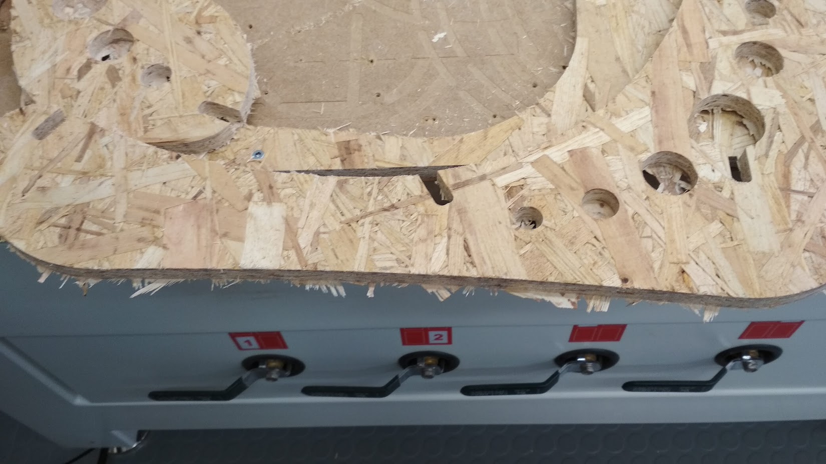 The tabs I created were too small. Because of the material structure on some parts the tabs were cut trough. So for a few times I paused the process and removed parts with a carpet knife. Pockets were cut perfectly.