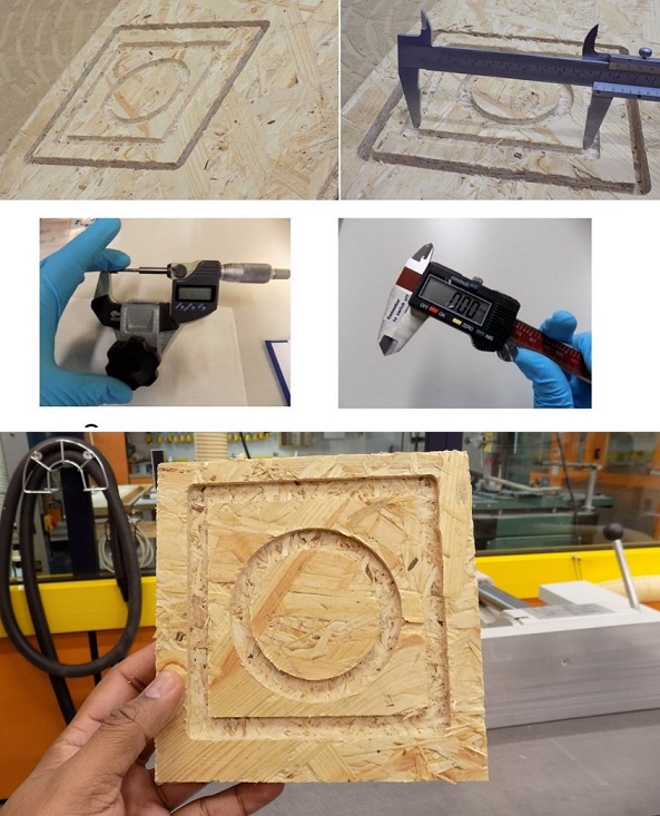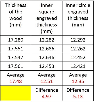 We also documented the engraved area from the square, and circular engrave thickness measured before and after milling using digital screw gauge. See the results and difference in thickness from the square area and the circular area from the below table.