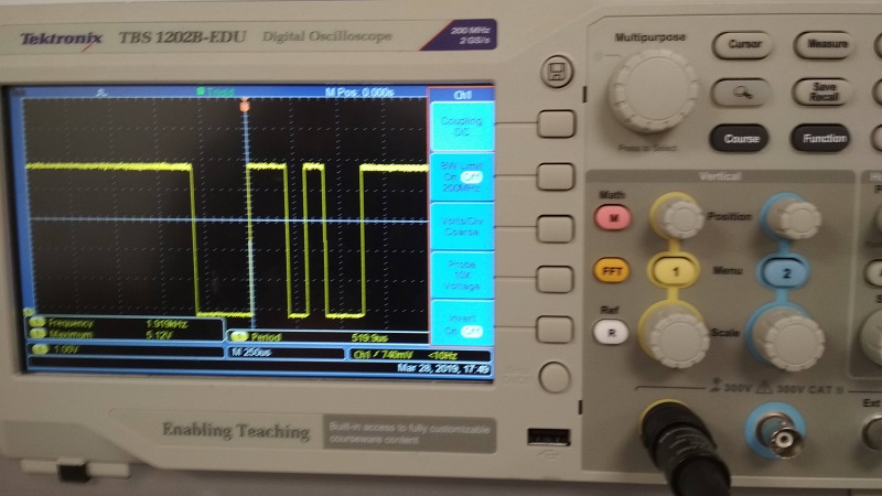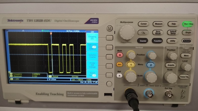 Just to be sure that our device is working properly, we have checked values using oscilloscope. Circuit was powered from USB port. Everything worked as expected.