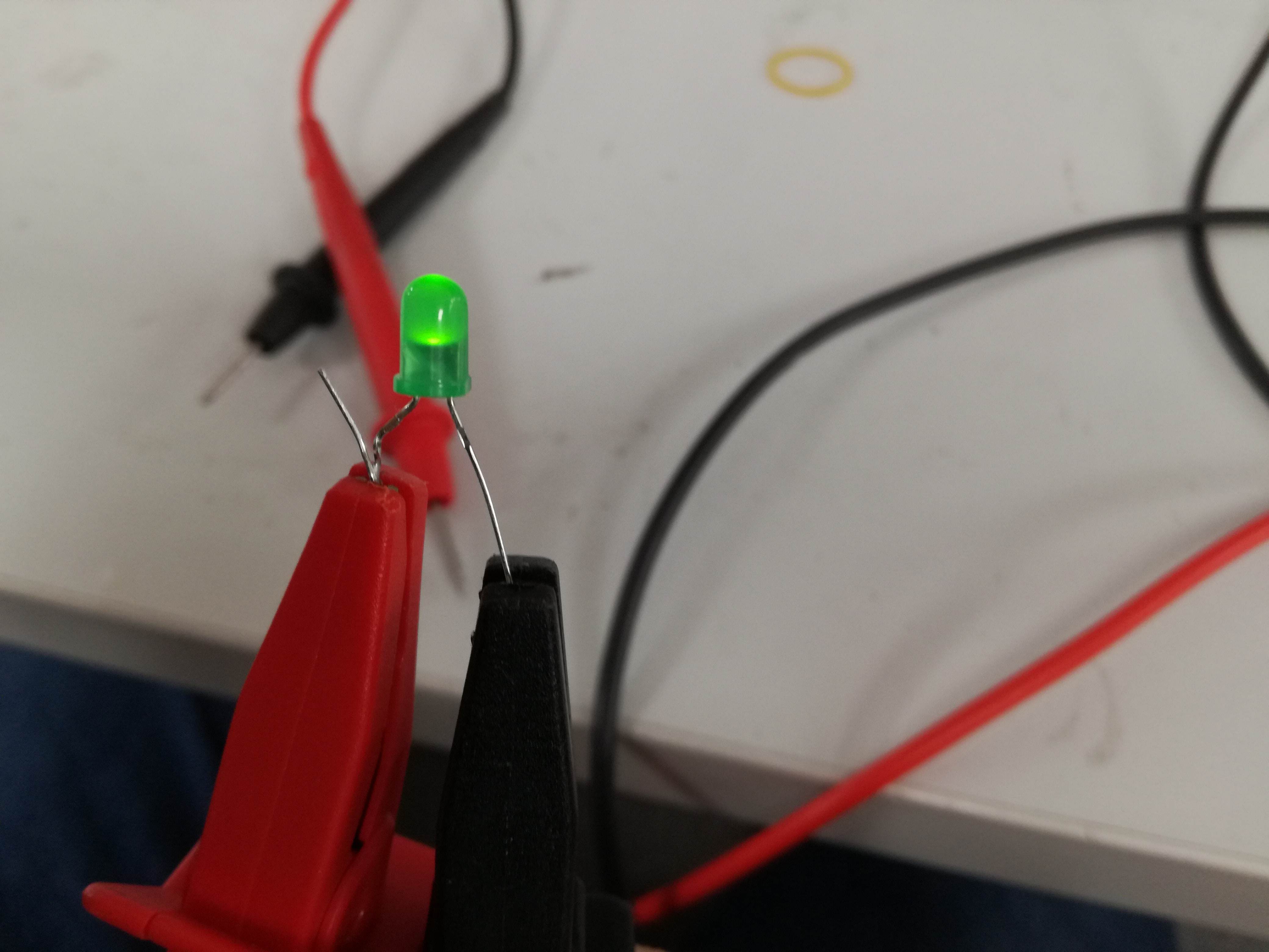We have connected our LED to the laboratory power supply. It is smart construction as it has both current and voltage limited output. Meaning it would be really difficult to burn our LED but we manged.