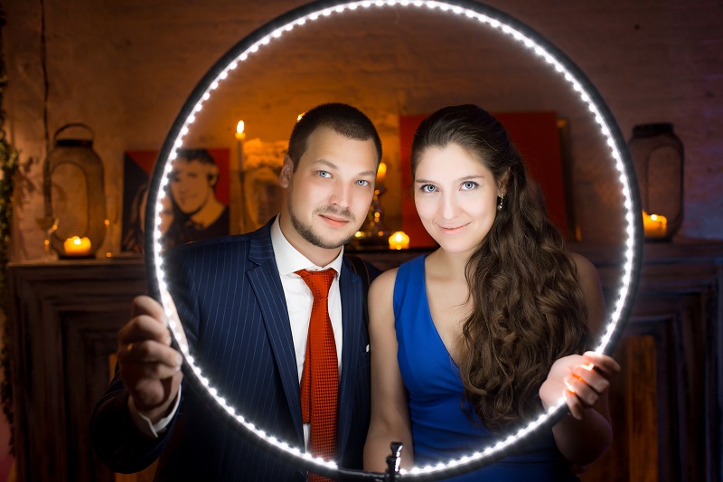 I finally have found photos which originally inspired me to start this project. Two years ago me and my wife were at our friends wedding. They made it in a very nice loft style. And there was a very good photographer who had a custom made LED ring. It looked cool and everybody were taking pictures with it. It had only cold white LEDs, but in a loft area with dimmed lights it looked magnificient. And I liked the result photos as well. So, I wanted to make one on my own for a long time.
