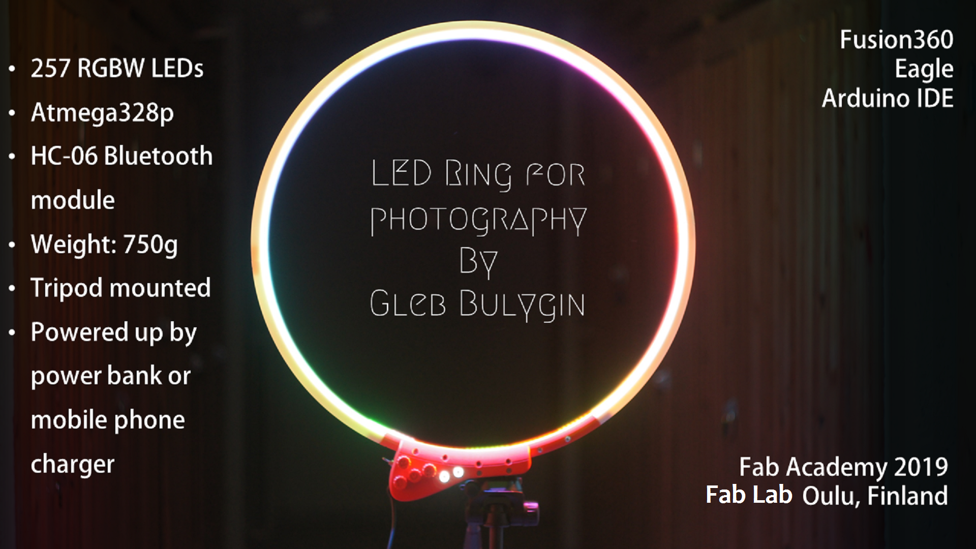 On Electronics Design week I learned how to design PCBs in Eagle. I took me some time to get used to it. I started working on my final board after Input Devices week, where I successfully designed and made myself an upgraded version of the Hello Word board and Light sensor board. On Output devices week I learned how to run adressed LED strip with ATtiny44. I learned as well, that ATtiny is not enough for 260 LEDs, so I started a new design with ATmega328p. My design is simple, but still it took me some time to make it work. On Embedded programming week I started the first version of the firmware. I used my Arduino Uno for the tests and I used Arduino IDE all way long.