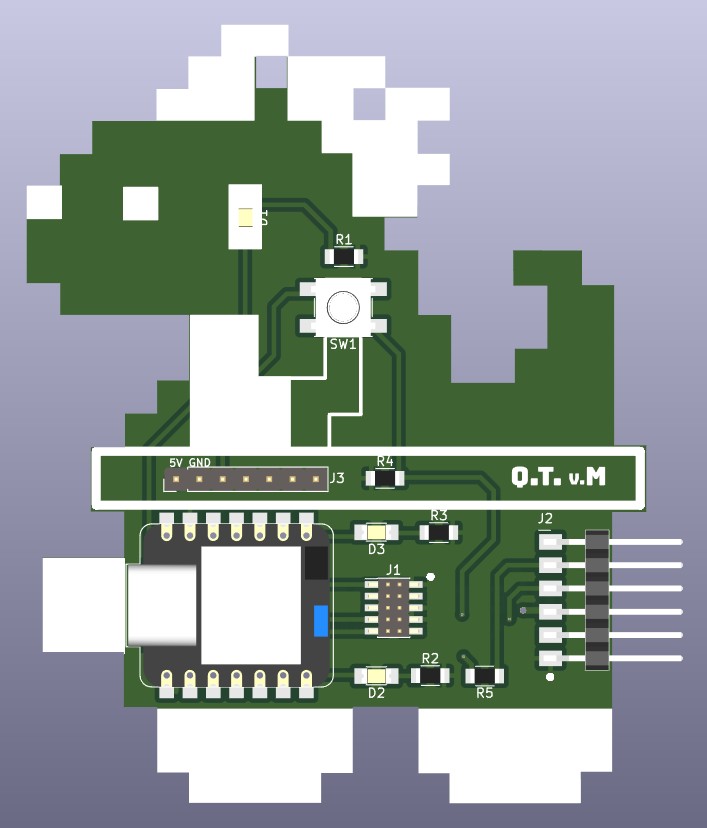A character-driven PCB inspired by Quentin's dinosaur concept, adapted as a custom board page following the KiCAT project format.