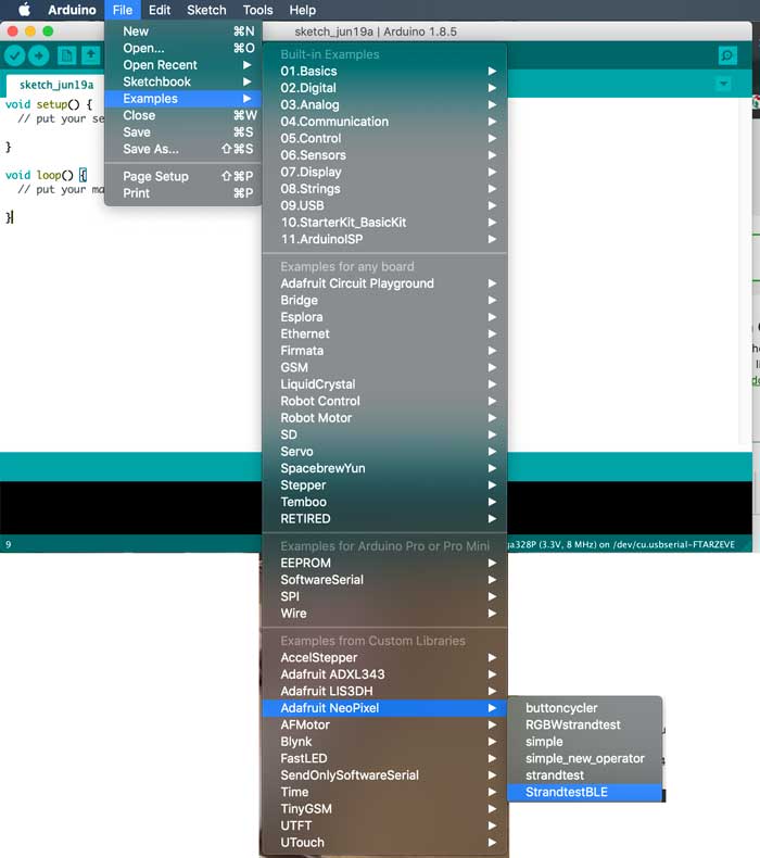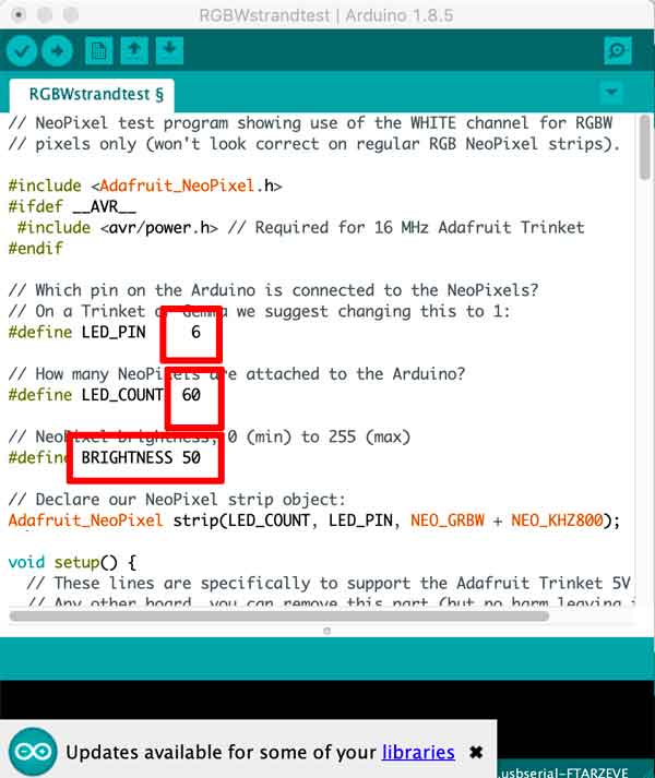 The RGBtest sketch shows you how to use the [#define] with Neopixels.Define the pin to 6 (already set),