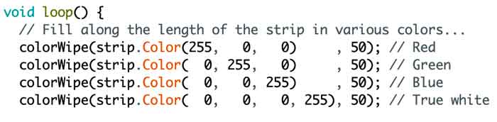 Neopixel is RGB light, which means, it uses red, green and blue to make color.you can change these numbers (0-255) to make your own color combo.