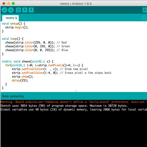 I was given a strip of neopixels to connect it to my fabkit to try programming. It is important to ALWAYS read through the datasheet and research on examples that were done.Adafruit has libraries and code examples that you can use