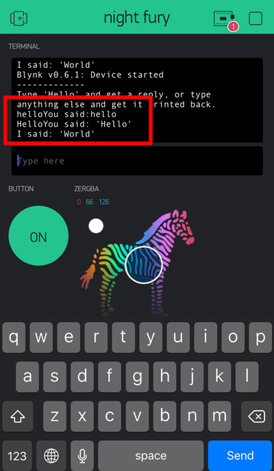 Once you are connected, you can type in the terminal in your phone "Hello"and it will answer with "World"