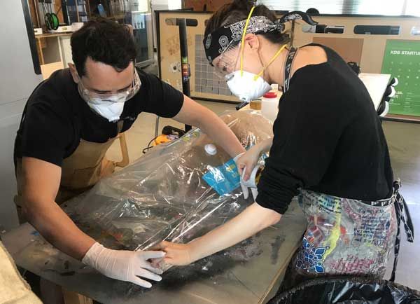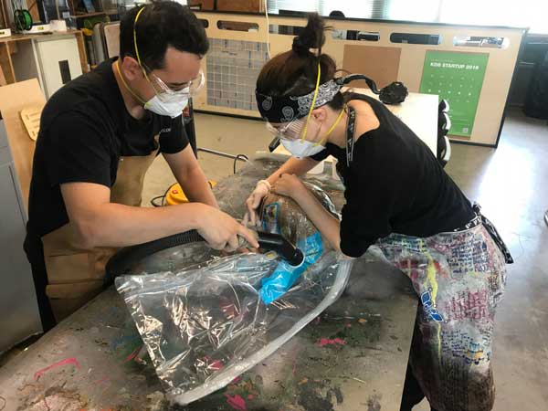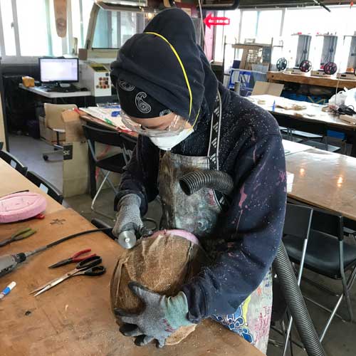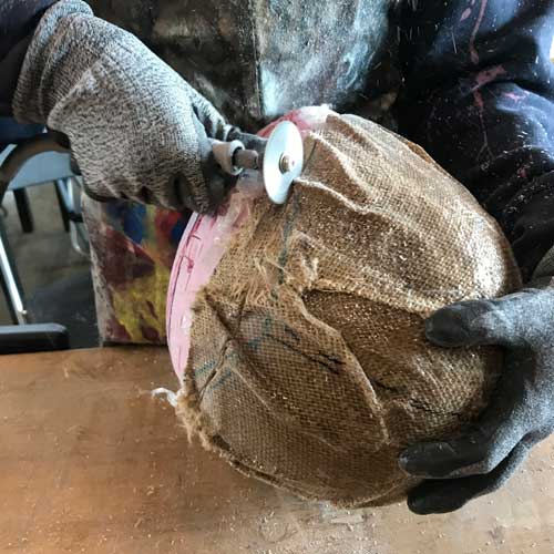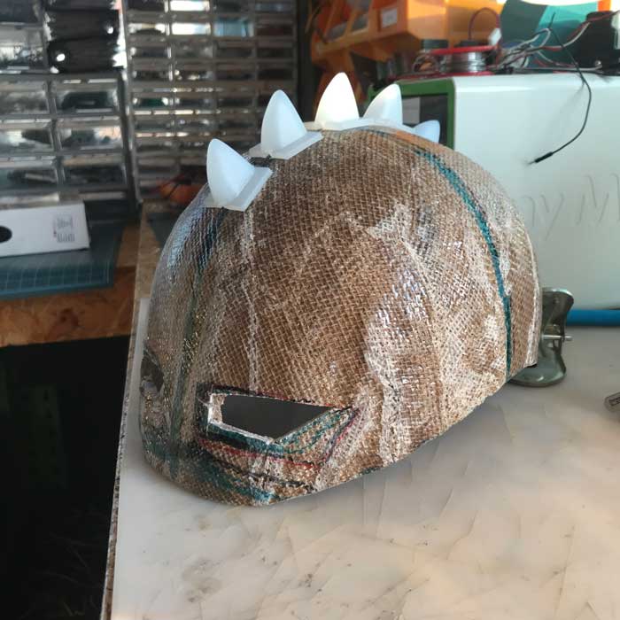 The last layer that was for breather was not supposed to be fused together.I think we had too much resin Using a dremmel with a wicked blade, I chopped through my otherwise extremely hard helmet.