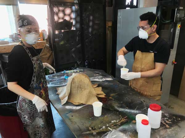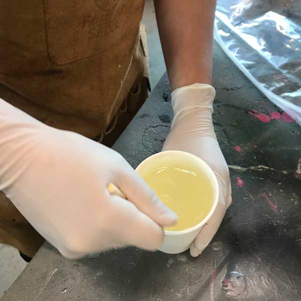 After each layer, we poured and patted down the resin.