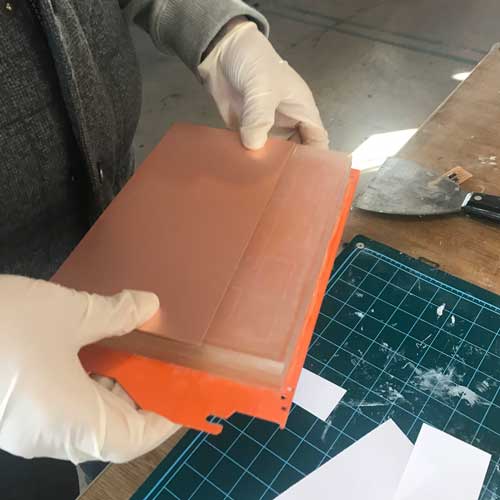 (having rubber gloves is helpful as grease from your hands are bad for the board.)