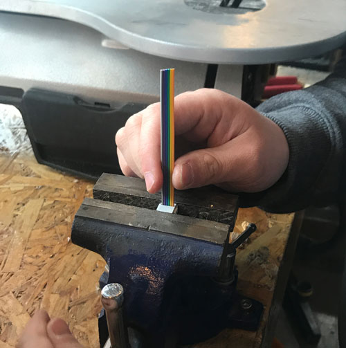 Using the rainbow cables and connectors, make a cable connector for your ISP.make sure that when you clamp the connector on the cable, make sure they are facing