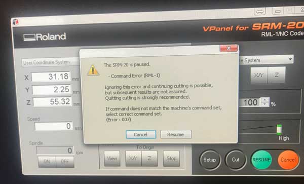 4. Press 'cut' to pick your .rml file and start.