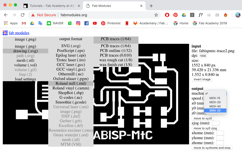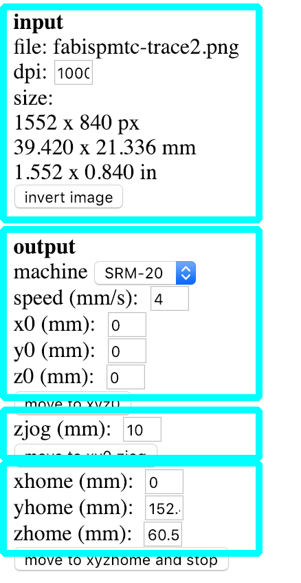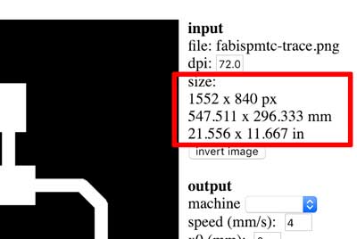 Check the input for the size and dpi (1000) Set the your machine, and speed (trace 4, cut 1),