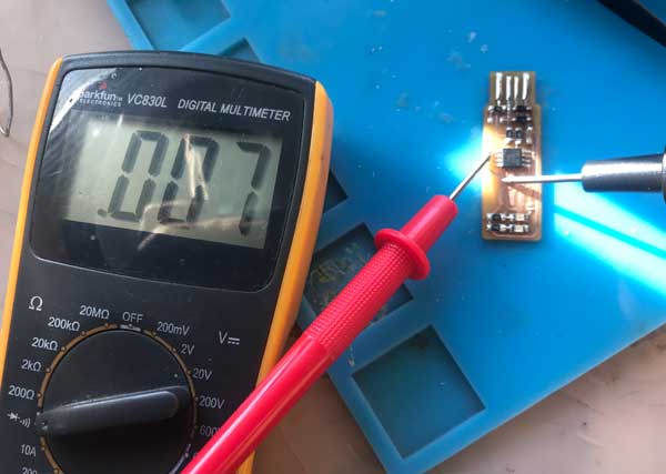 Connecting the new board to the computer to program.
