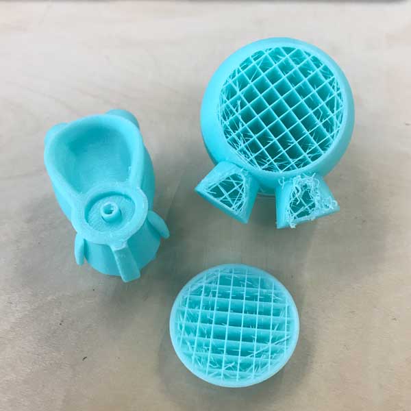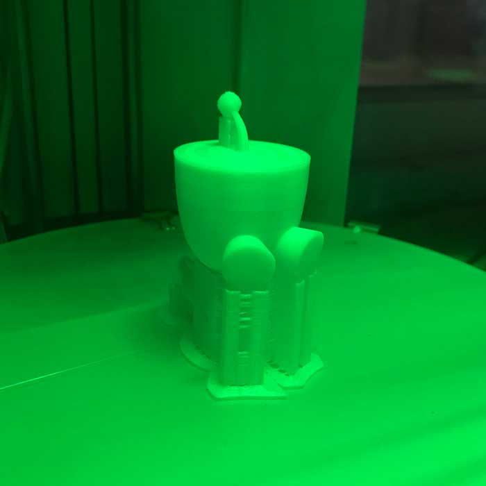We were adviced to stay watch the printing process for the first 10 minutes to check that it was going correctly. The first sign of a problem can be seen when the brim and initial layer is made. Like in the photo above, I knew that my print was going to be wrong because the design has a flat square bottom, but the initial layer and brim was not. (I went on with it anyways just to see)