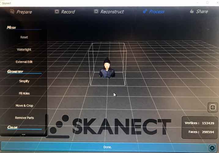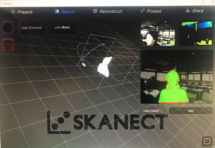I was in the lab by myself, so I had to scan by myself by slowly spinning in place while the scanner was on. Skanect had different rendering functions in itself and even projected the picture onto the 3D scan.
