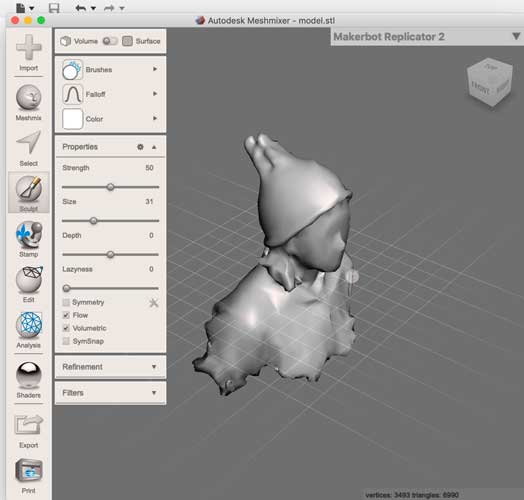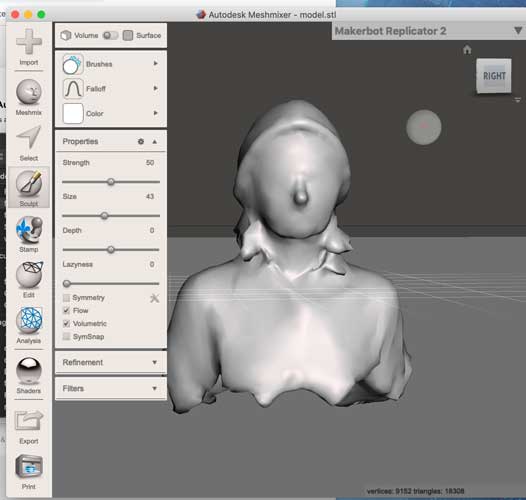 Finally, I use cura to and started printing. I kept the uneven bottom to make it look like a bust.