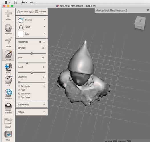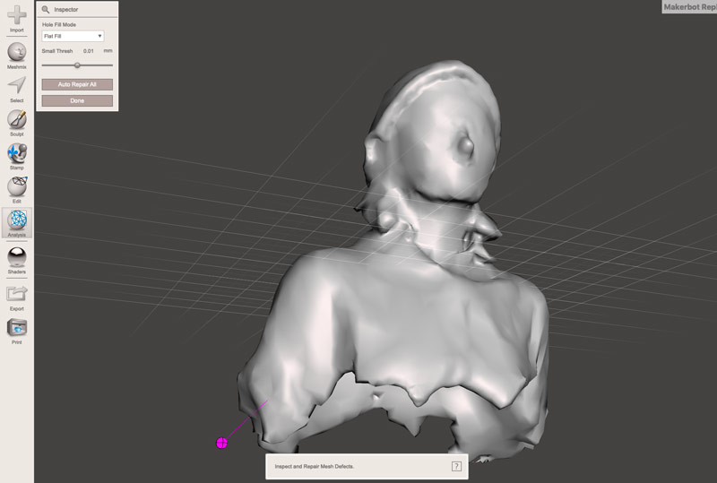 Then I loaded the saved file on Autodesk Meshmixer. For me, there weren't any holes (that comes from bad scanning) like some people did,