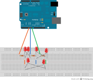 Let's test this with an Arduino to see it physically. Here is the wiring of the Charlieplexing.