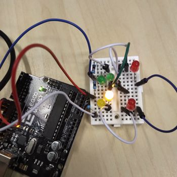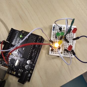 When you move the wires and connect and disconnect the pins, you can see (even without any line of code) that you'll be able to light up each LED individually.