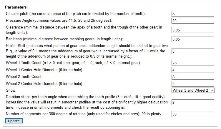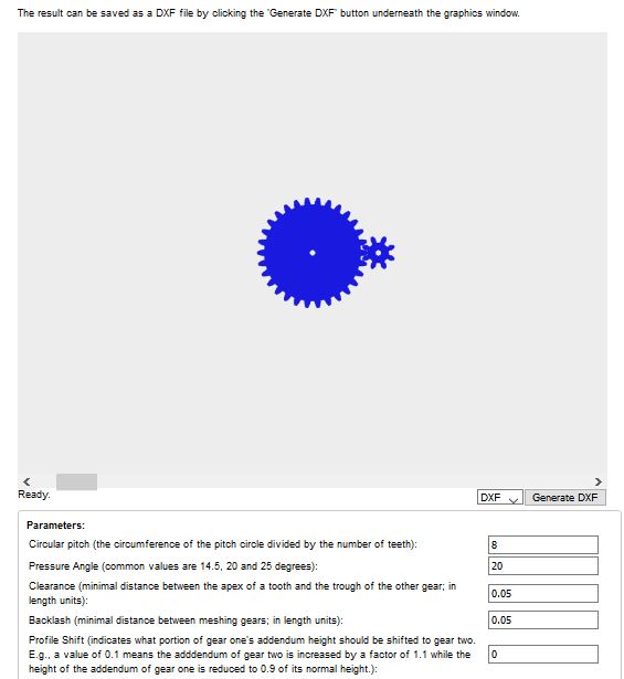 | Involute Spur Gear Builder | http://hessmer.org/gears/InvoluteSpurGearBuilder.html |