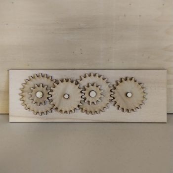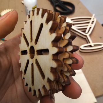 I took a small frame of wood to do some tests and see if they fit all together, and what kind of gears I can make by assembling them !