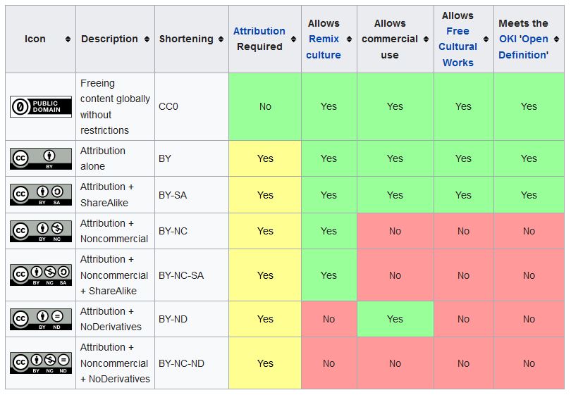Open-source licences is a pretty vast world. I have to choose between the different ones. I'm gonna check about the licences Creative Commons, that constitutes the different conditions of use and reuse of masterpieces (especially those on the internet, which is precisely my case). Here is a spectrum of the different licences :