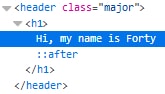 I'll start with the name. If you want to do it too, right-click on the element you want to change (here the word "forty") and select "inspect". A panel will open in your web browser. This panel gives you an interactive way to look at the code. Hover the line that shows the h1 tags. It should look like this :