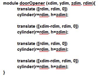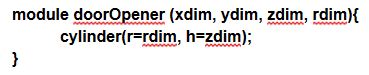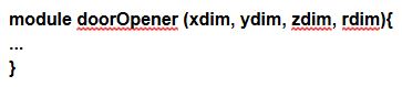 I’ll first create a module doorOpener, so I can put all the concerned code in it. I’ll add some dimensions parameters that I’ll create after.