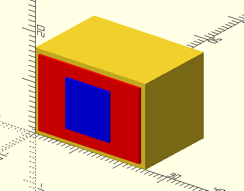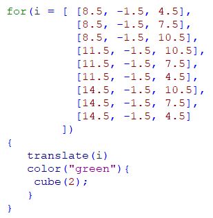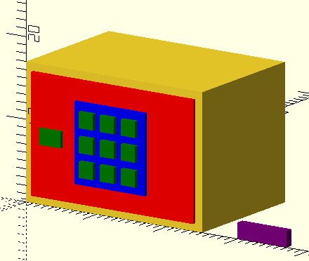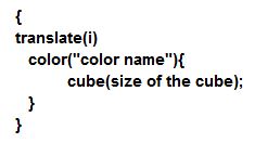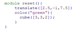 Here’s the code and the result : translate([7.5,-1,3.5]){color("blue"){cube(10);}}