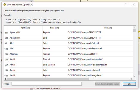 In the software, you can find a list of fonts, just click on the “help” menu and “list of fonts”. A window will open.