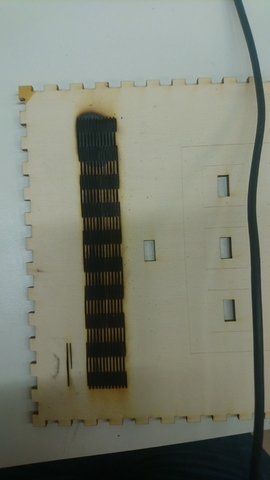 The second try was not better. The kerf bending part is more difficult than I thought, and I actually set my wood board on fire. ^^'