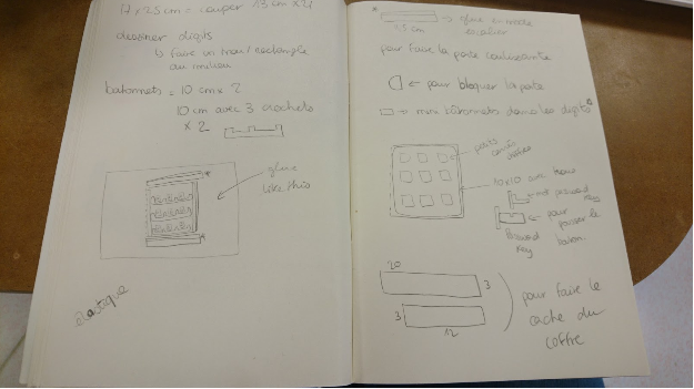 I’m a pen and paper girl, so I started by drawing the door of the safe on paper. It was the one I had the most difficulty to really find the proper mesures just by looking at the video.
