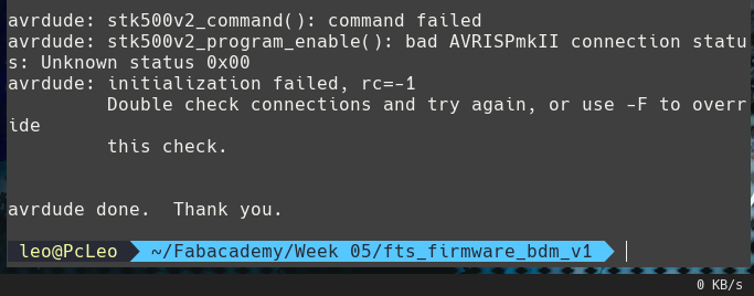 Then you can go to the programming part. I strongly advise you to follow (just as I did) the steps described in Brian's biological dad's documentation : http://fab.cba.mit.edu/classes/863.16/doc/projects/ftsmin/index.html#assembly