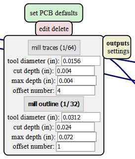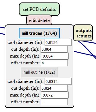 > We uploaded the trace file of our PCB. In the “set PCB defaults” module, just select “mill trace 1/64”. Don’t change any value.