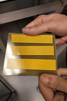 2) Then, you have to install the copper board on the plate. Make sure to glue it with some tape (be careful that there is no bubbles under it, so it won’t deform your board).