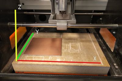 Before starting to mill, you have to define your origin axis. This means that you have to tell the machine where the cutter should start, and where your copper plate is so the cutter won't go too deep or not enough.