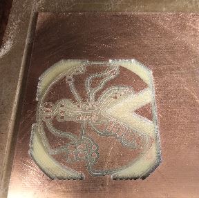 Roads are clear, components at the right size…. okay this one is for good … Or not ! I had trouble with my settings this time, engraving my pacman instead of cutting it ^^’