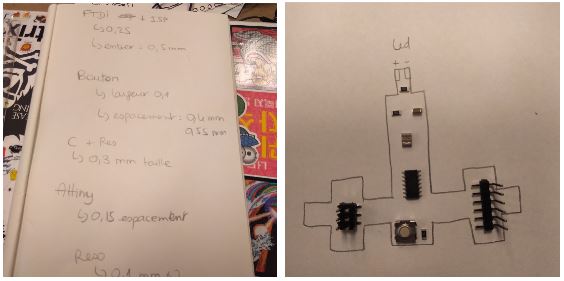 First things first, I milled a test just to see if the process I have in mind works. I took the original Hello Board from Eagle, and draw it. Pen and paper, here I am ! :)