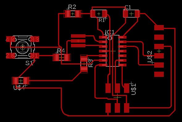 This week, we have to make our own PCB design. We have to redo the Hello Board, but with our own roads and stuff. And we have to add a button and a led.