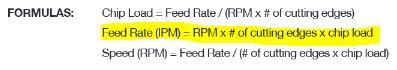 By reading the document I found out that the formula to calculate the feedrate is: Spindle speed (RPM) x number of cutting edges x chip load.