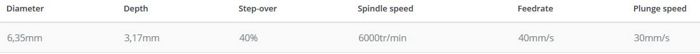 Stéphane showed me this data recommandation chart for soft plywood from Onsrud to help me calculate the feedrate.