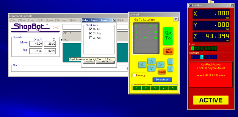 Then I can enter the settings for the Shopbot. As I have to do when I use the Roland, with the Shopbot I have to set the X, Y and Z of the machine. For this I use the Shopbot3 software.