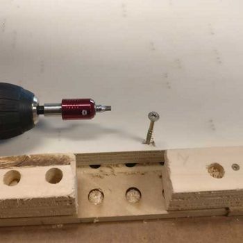 First, I fixed the plank of wood on the table by putting screws at the edges.
