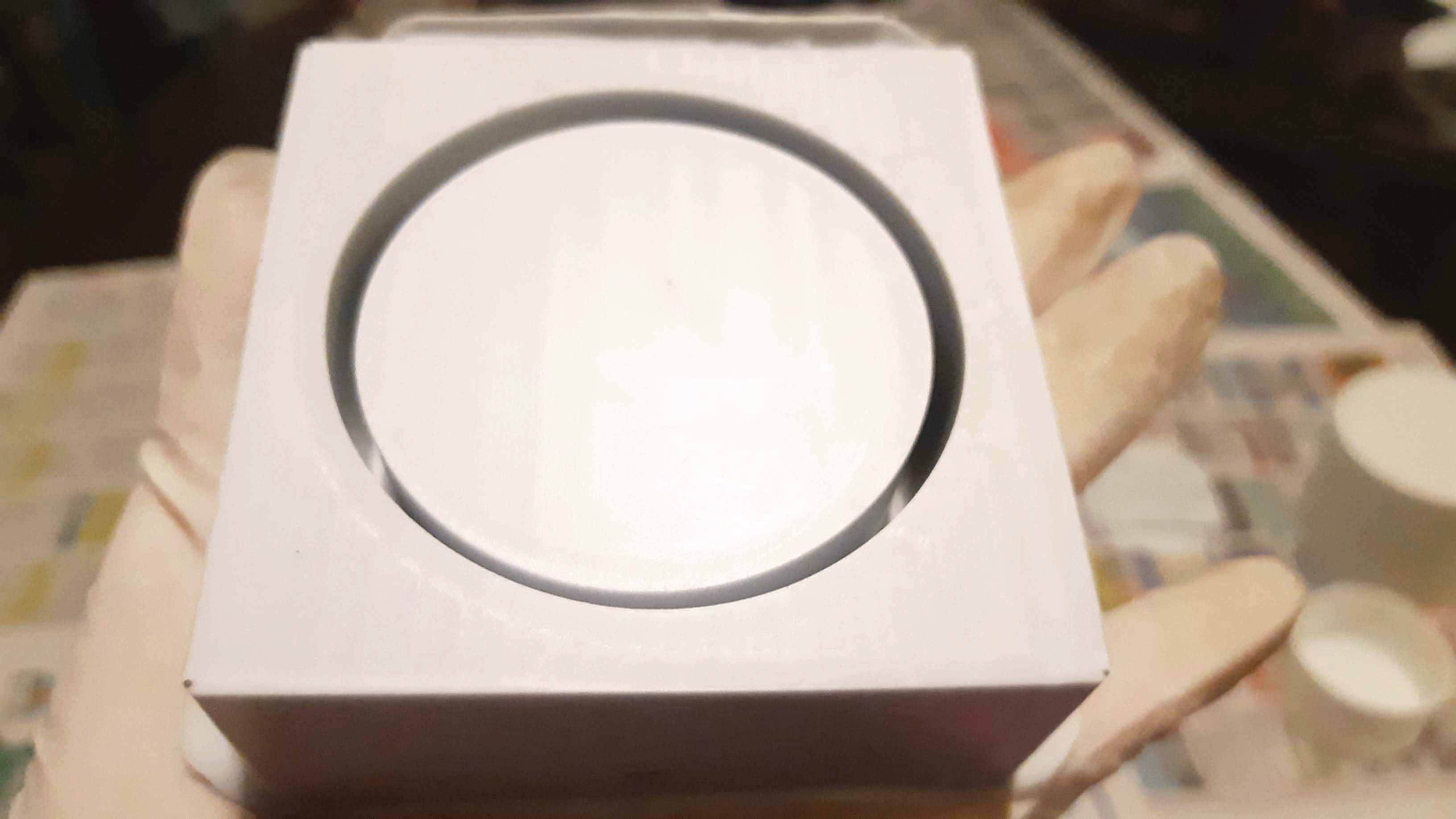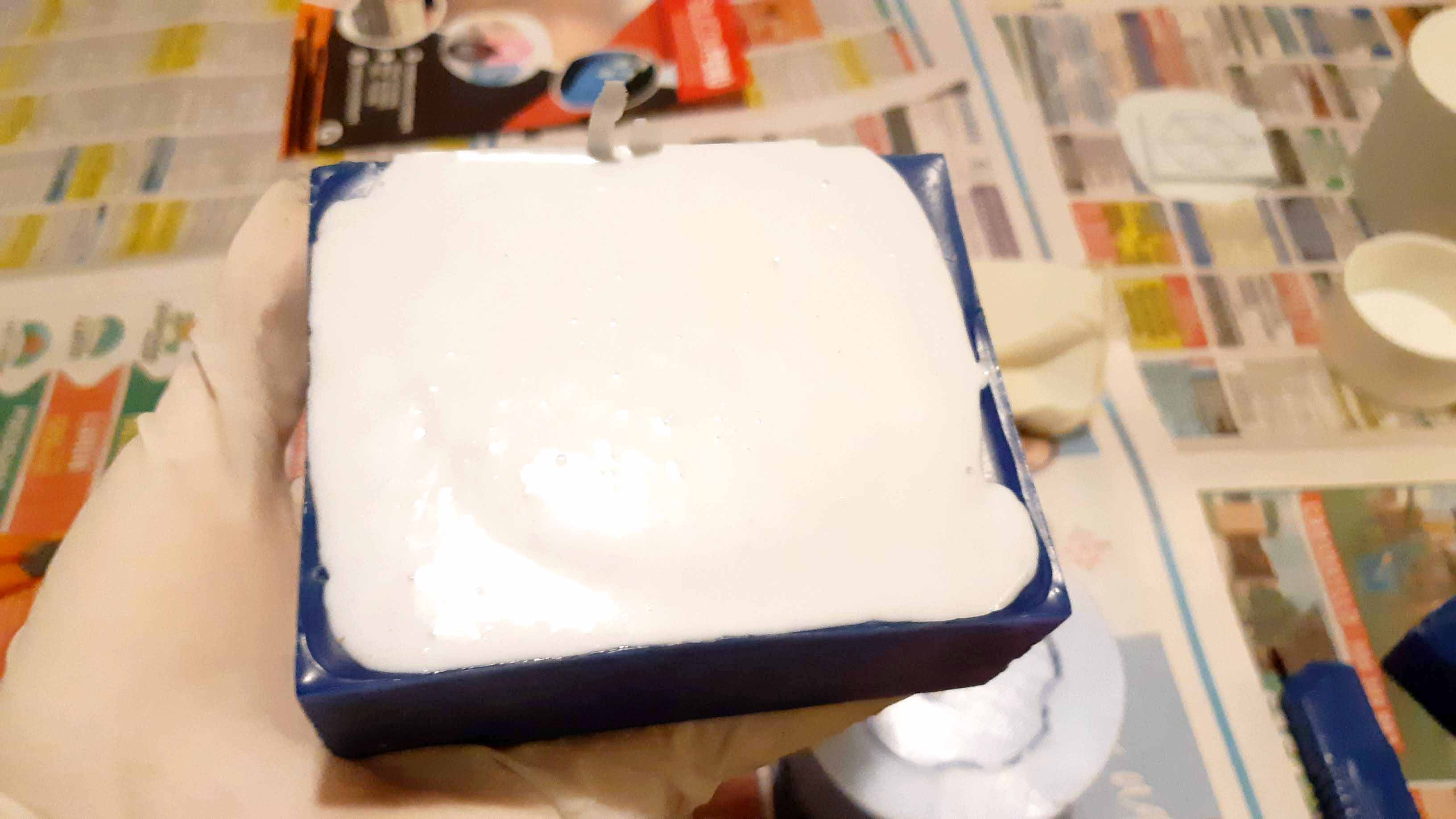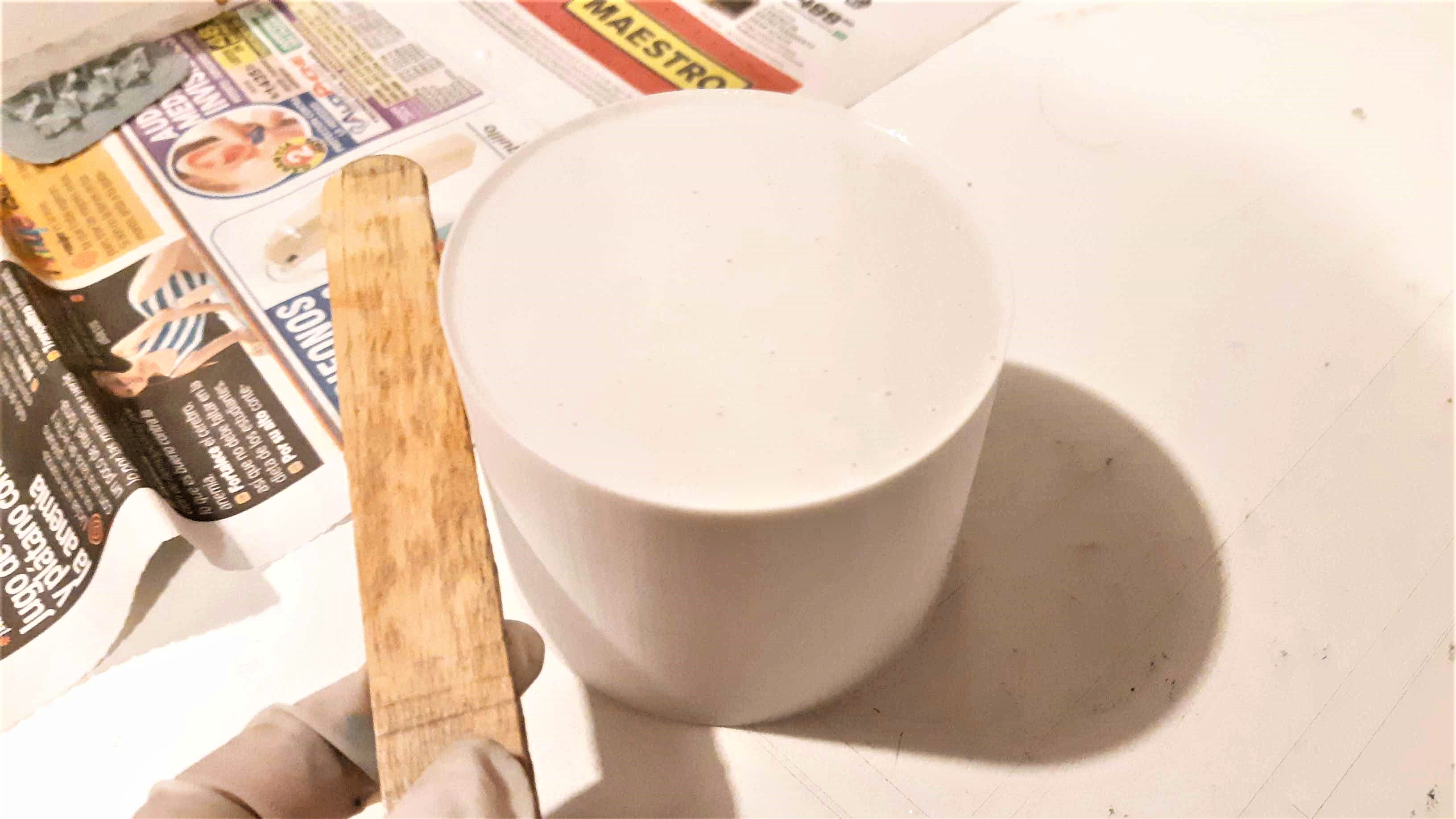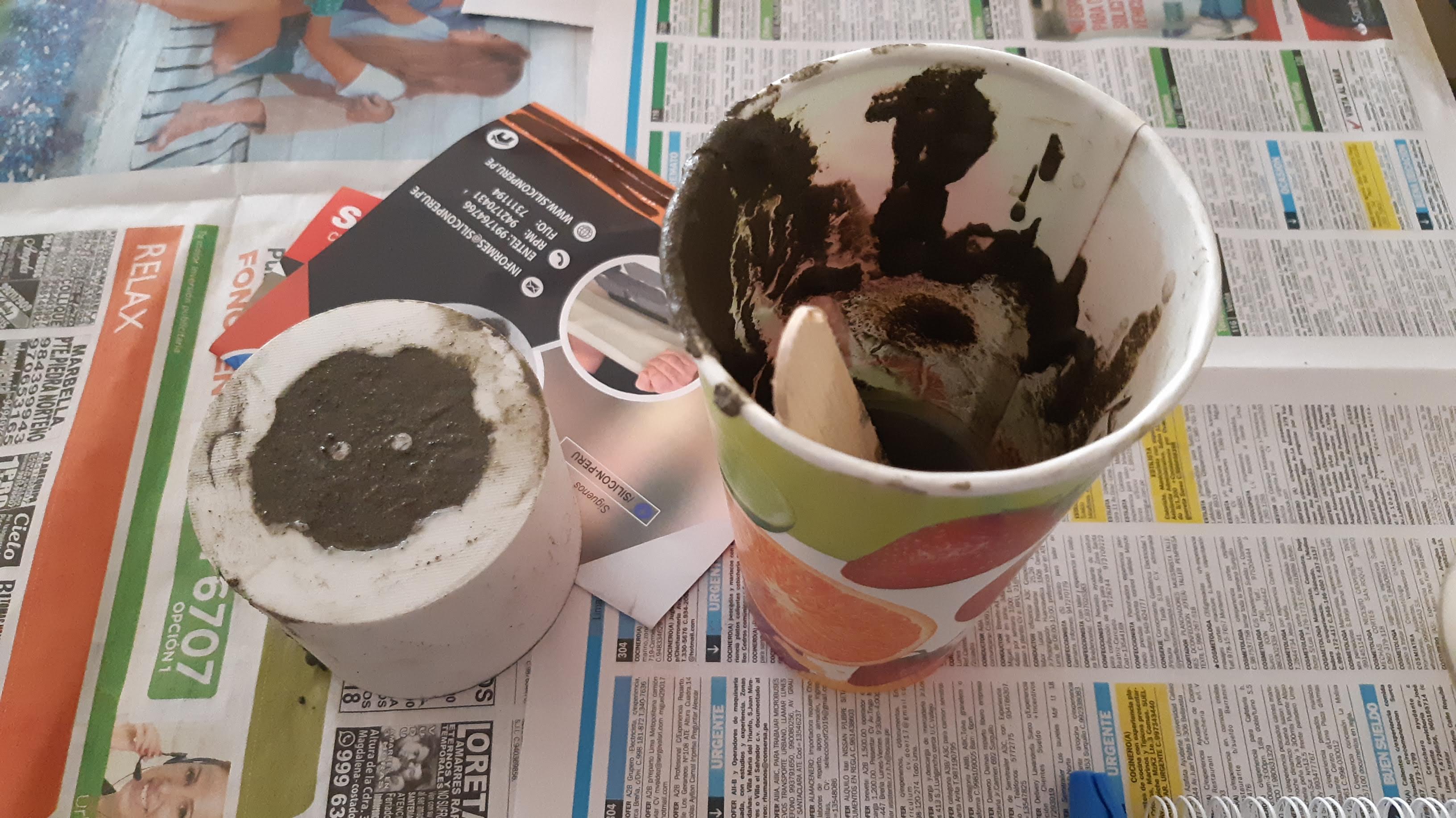 For the top piece of the pot I used again a printed container, I poured the mix carefully and then I spend quite a long time hitting slightly the container to get rid of most bubbles as possible.