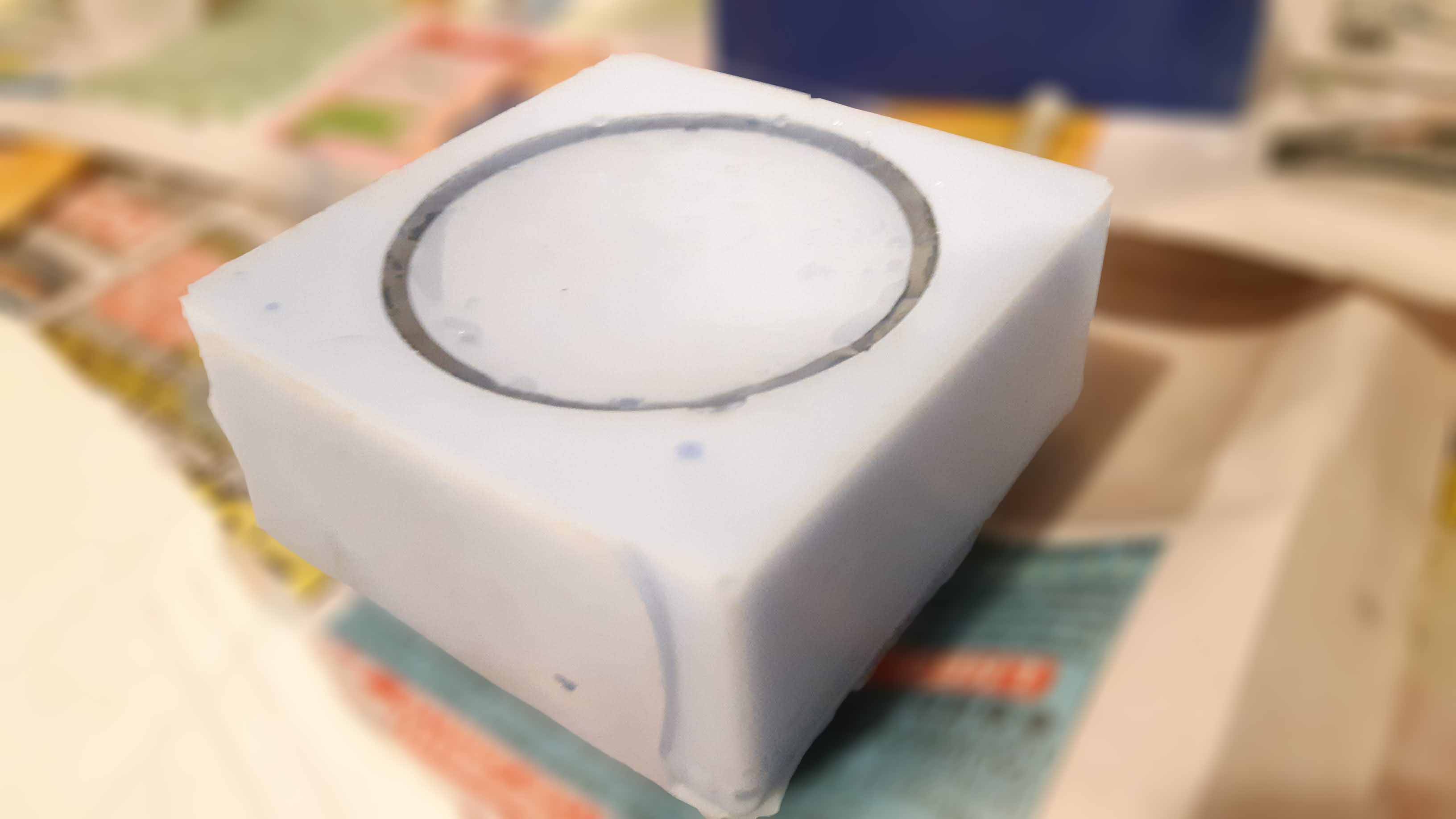 I thought it would be interesting and useful for the button part to be clear so you can see how much water the plant has left. That's why I decided to make a mold for it and cast it with clear resin.