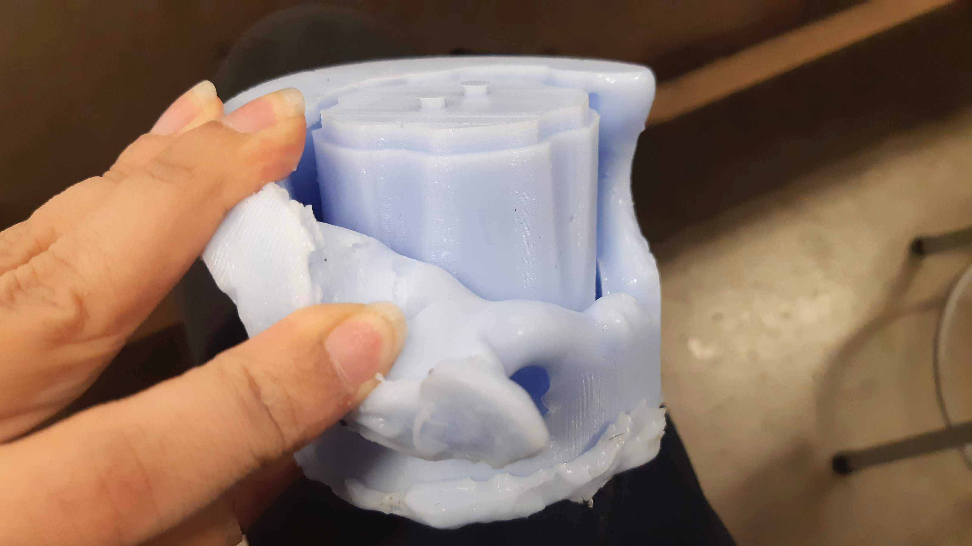 A 2 mm wall thickness wouldn't be a problem for a resin piece, however I was thinking about making, in the near future, the top part with concrete, and I don't think a 2mm wall would be a good fit.