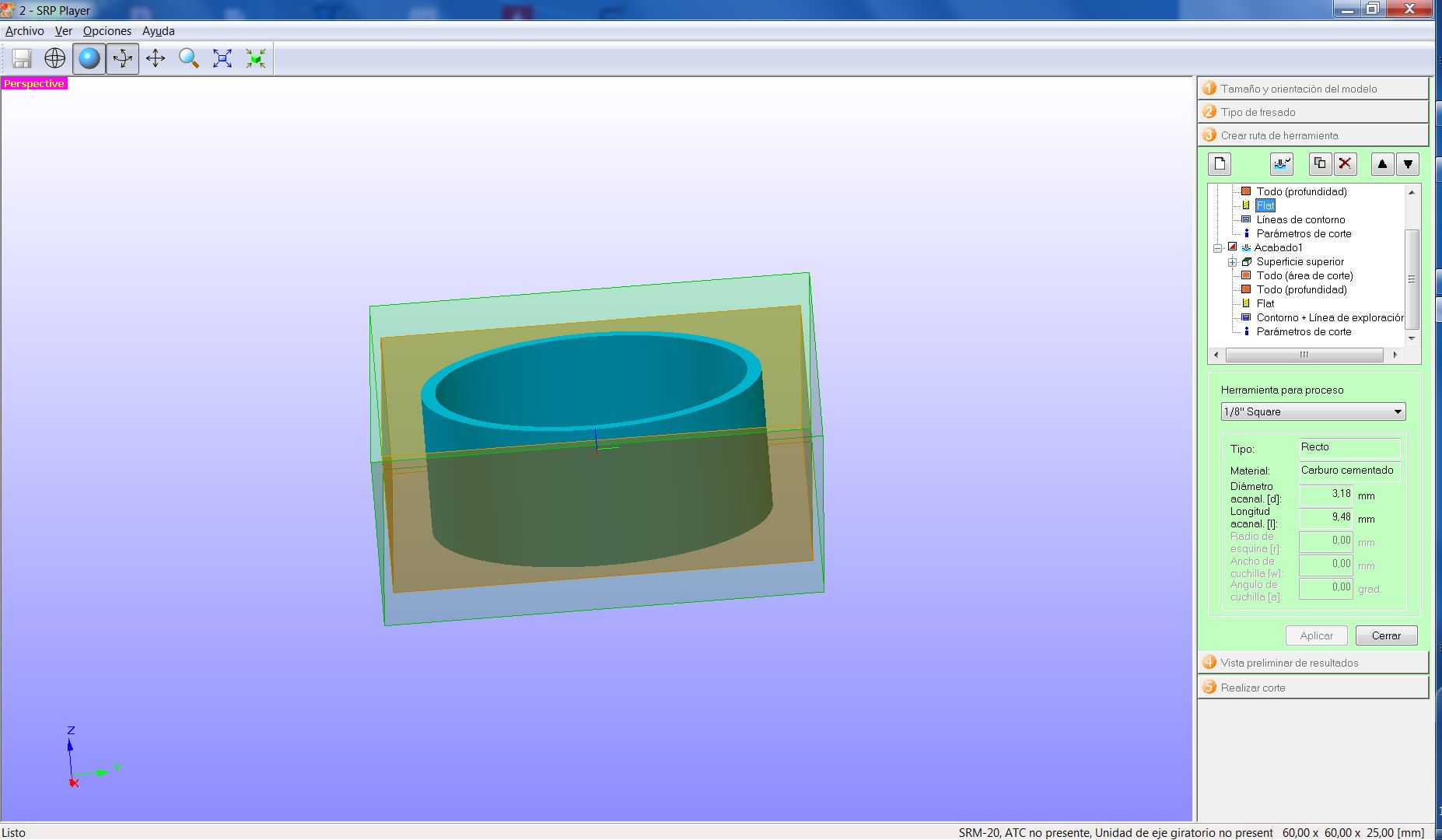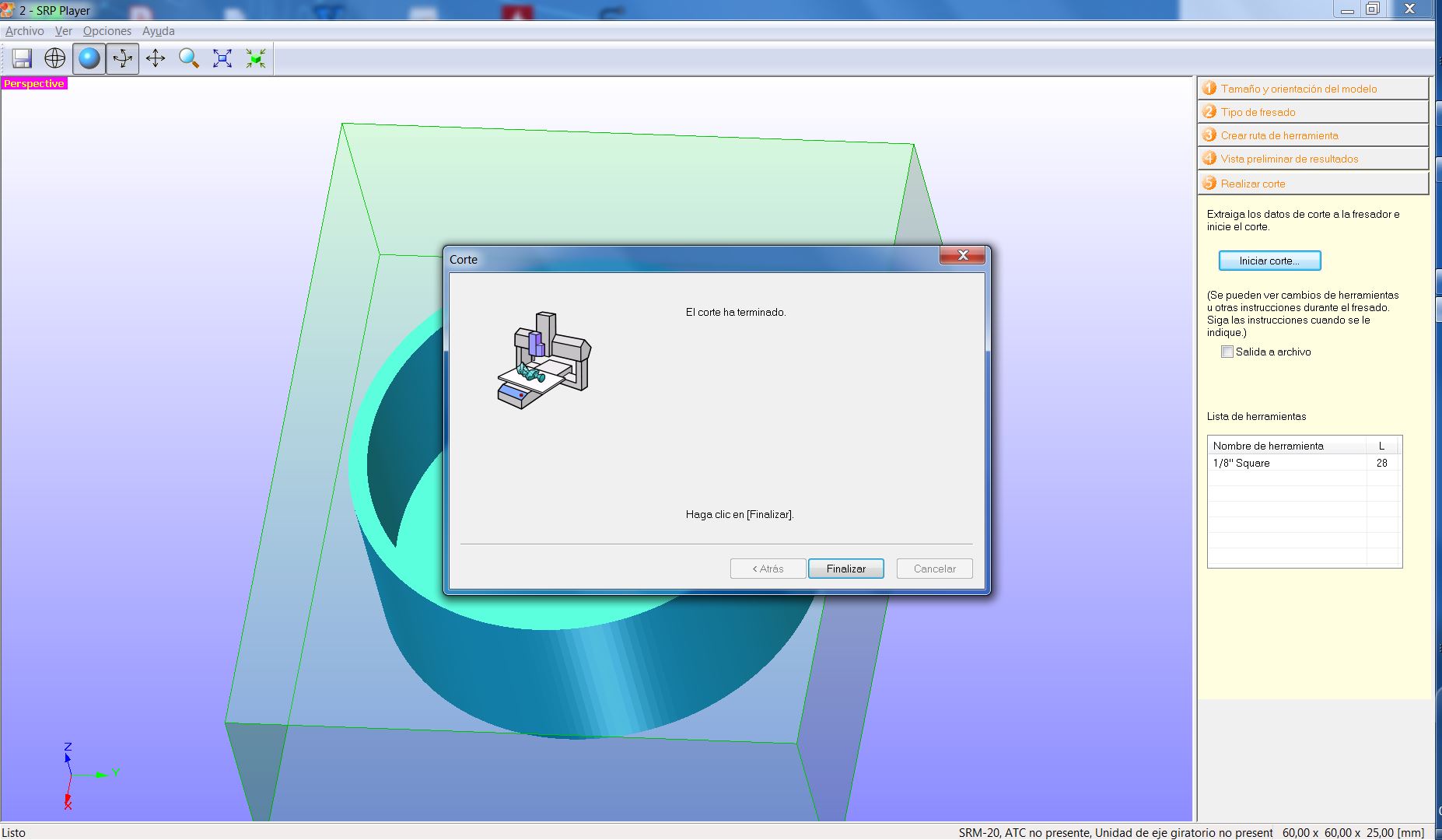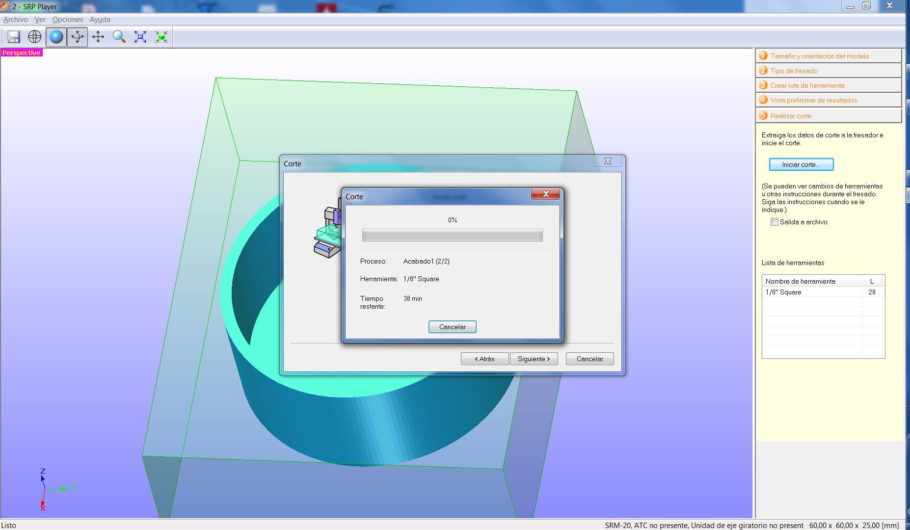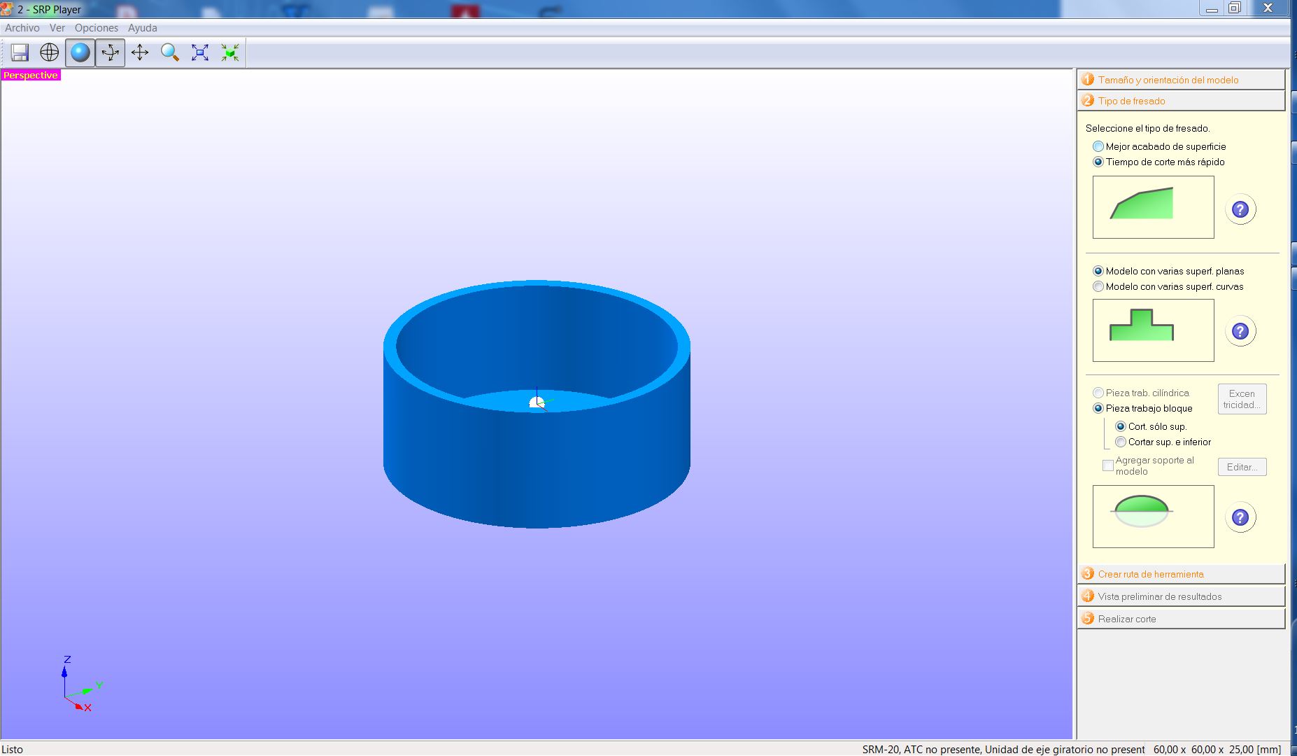I decided to use the Modela SRM-20 and the SRP Player software to set the parameters for it.