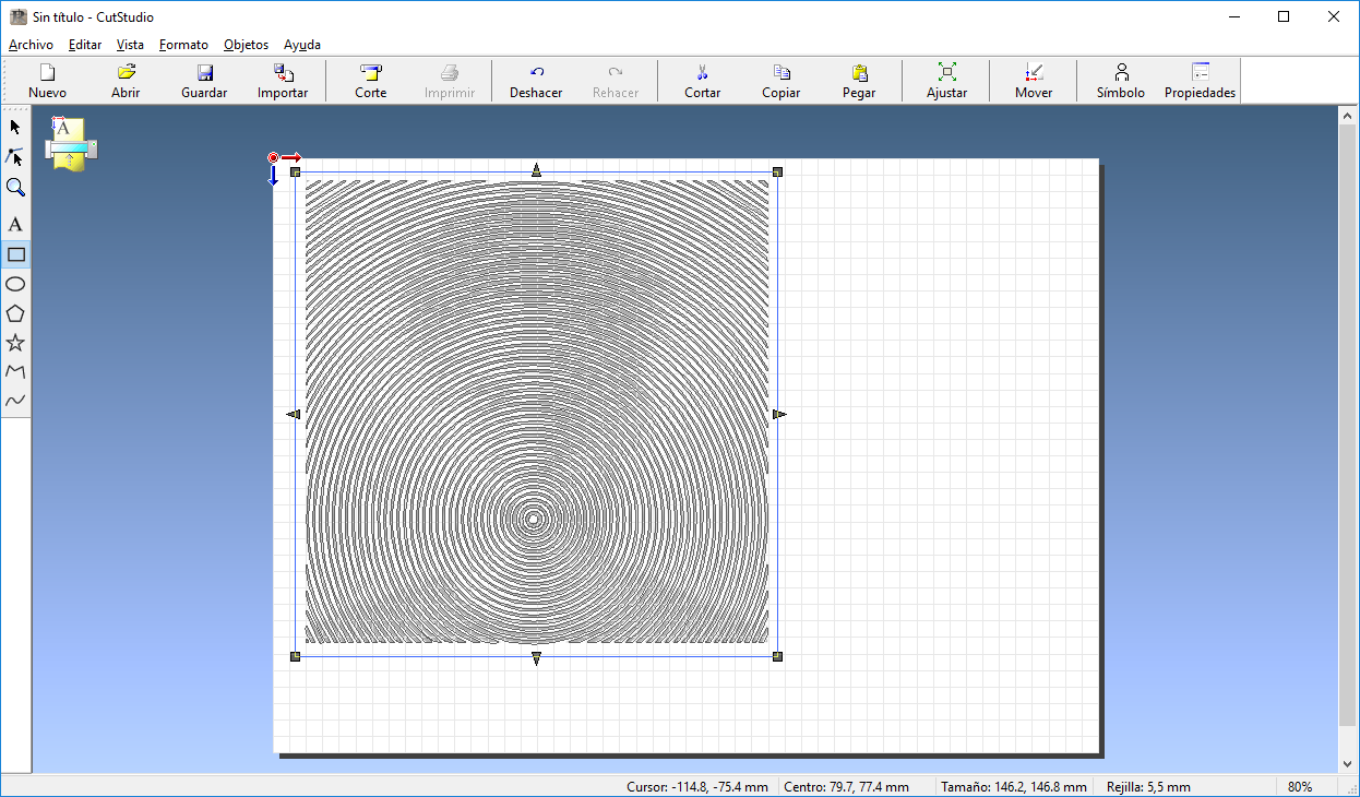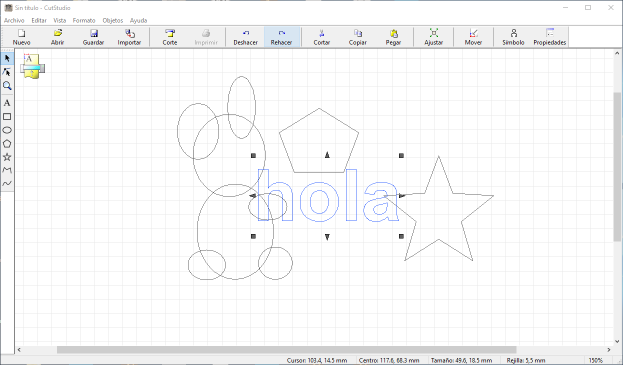 For this part I started opening the vinylcutter software and playing with it, as you can see, it lets you draw some basic forms and make some letters, or entire texts of course.